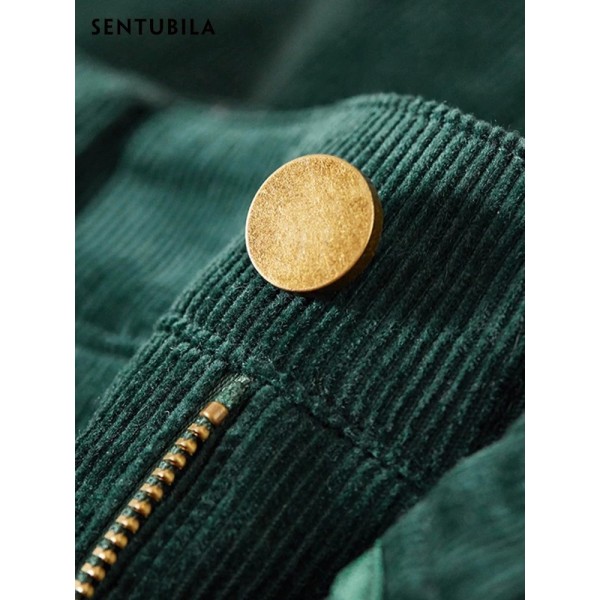 Sentubila-Falda Midi de pana para mujer, Falda de tubo con abertura de cintura alta, color verde oscuro, 2023