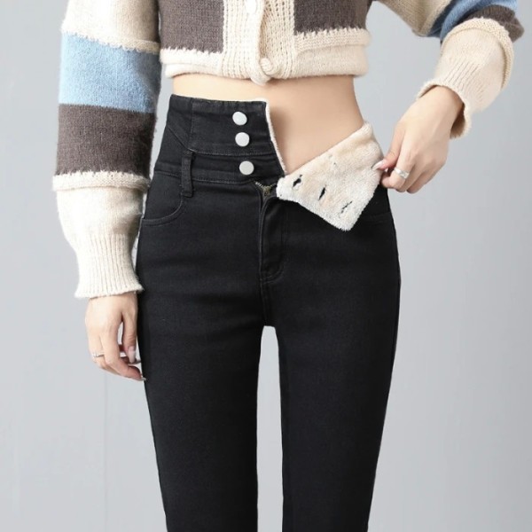 Pantalones vaqueros de cintura alta para mujer, Jeans clásicos de terciopelo de felpa, elásticos, gruesos, cálidos y delgados, color negro, invierno, nuevo