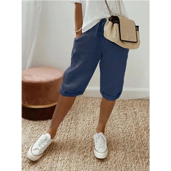 Pantalones cortos elásticos con bolsillo para mujer, Shorts deportivos de algodón, Color sólido, moda informal, para playa, verano, 2024