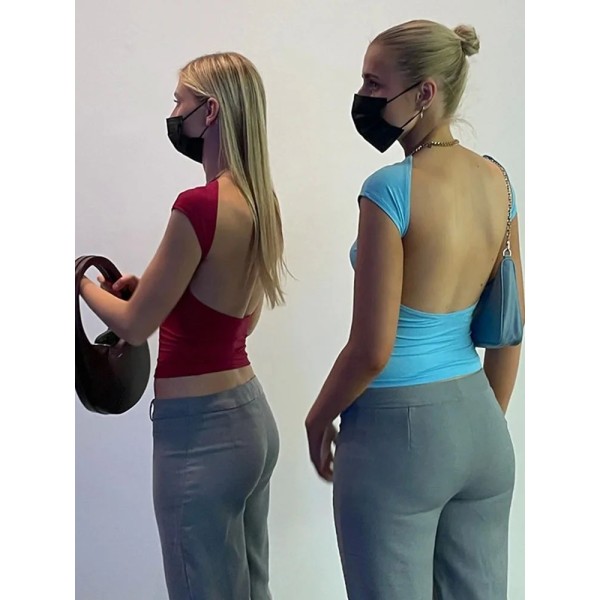 Tops de manga corta con espalda descubierta para mujer, ropa de múltiples formas, Camiseta básica ajustada, recortada, Top corto
