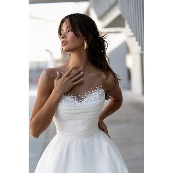 Vestidos de novia Vintage con cuello de perla, Túnica plisada Simple, elegante de satén, sin hombros, línea A, sin mangas, 2024
